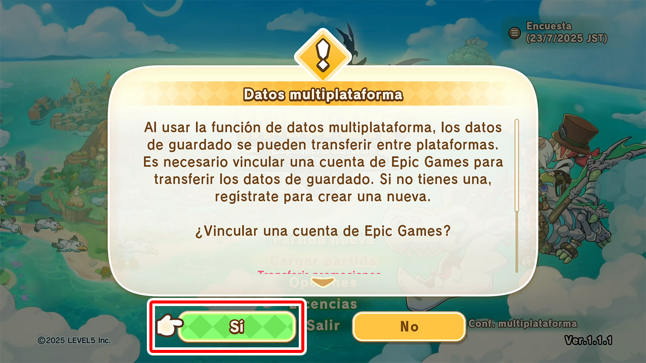Tras leer las indicaciones de los datos multiplataforma, pulsa la opción «Sí».