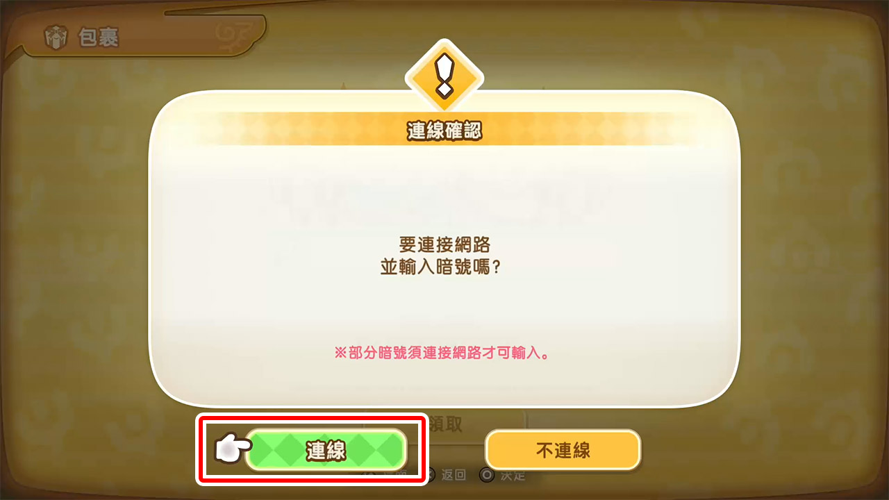 若要輸入需連接網路的暗號,請選擇「連線」。