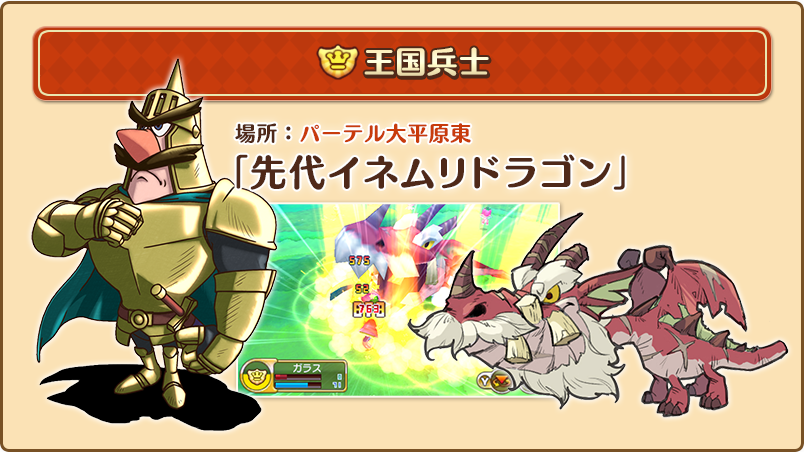 先代イネムリドラゴン/王国兵士の「ゴッド」となったことで、おとぎ話の怪物が目を覚ました。戦いを挑み、討伐の証である「真紅のウロコ」を手に入れよう!