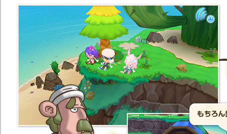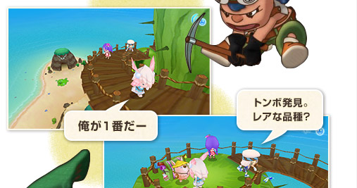 この島の木は他の場所の木とちょっと違うようだ。全員オノを構えてよーいどん! 針を飛ばしてくるサボテンのモンスターに気を付けて。